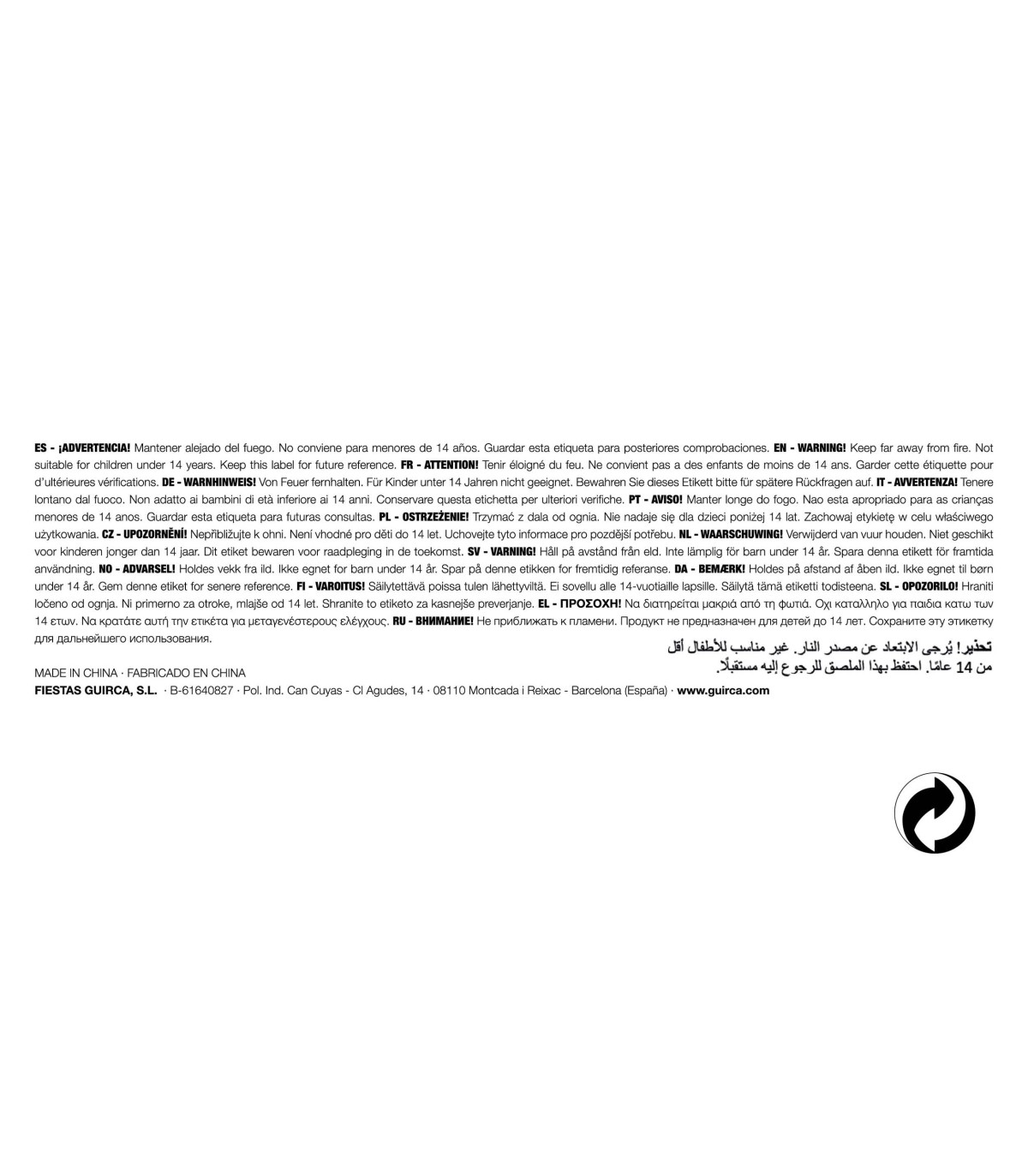 • ¡Advertencia! Mantener alejado del fuego.