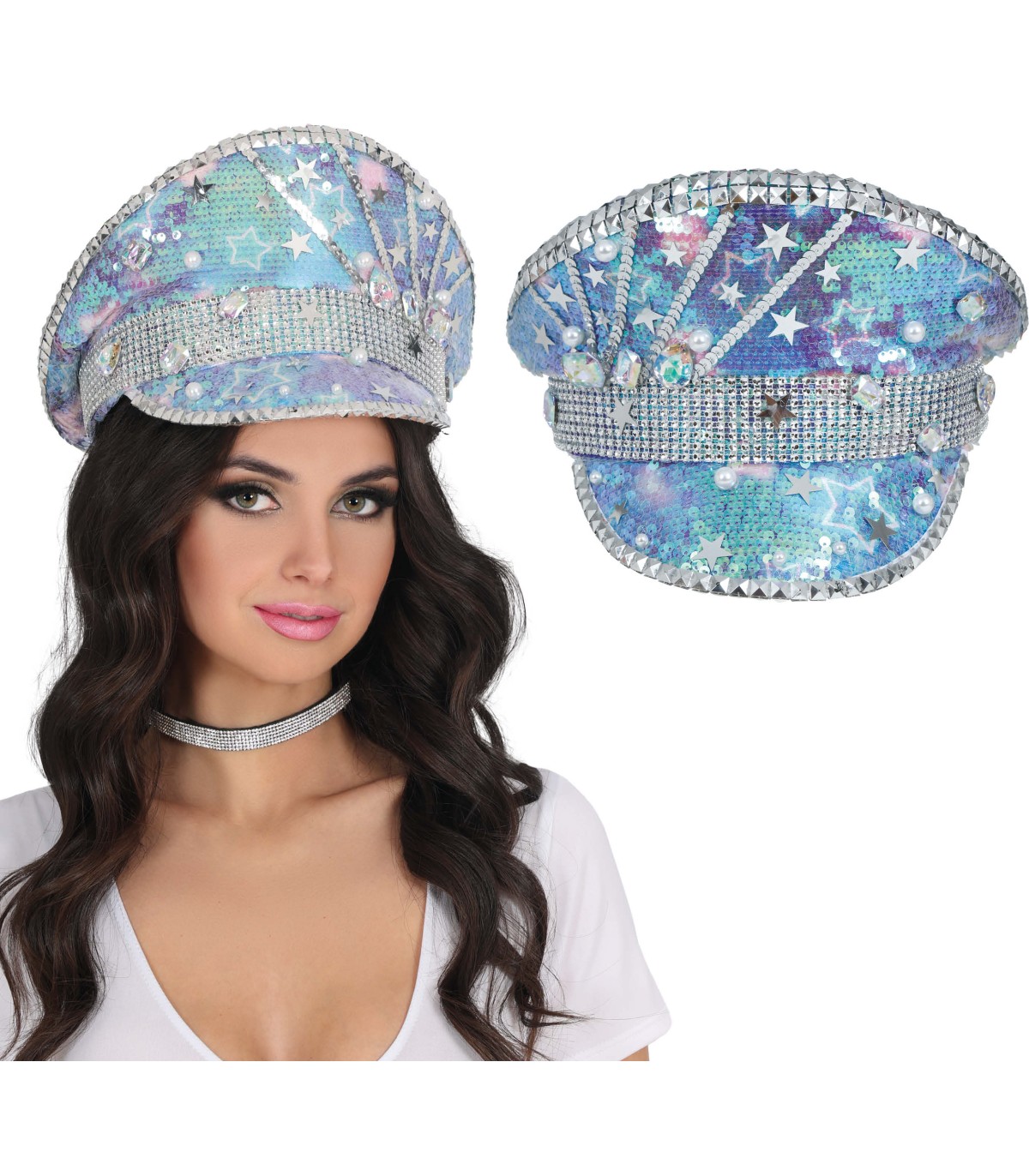 GORRA POLICIA AZUL CON PERLAS